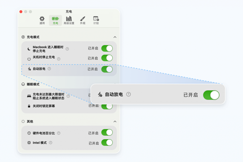 软件内置自动、手动与合盖放电(clamshell)模式,可根据使用场景选择合适策略。即使外接电源时,系统也能优先使用电池供电或在需要时让电池放电,以把电量控制在更健康的范围内。